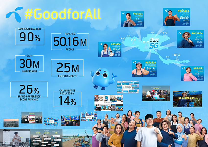 - ชูคอนเท้นต์สินค้า บริการจากเจ้าของธุรกิจตัวจริง ช่วยโปรโมทให้ขายสินค้า ช่วยสร้างรายได้สู่ธุรกิจต่างจังหวัดทั่วประเทศ ในแคมเปญ ดีทั่วดีถึง ที่ดีแทคต้องการช่วยเหลือคนตัวเล็ก ธุรกิจค้าขาย ให้อยู่ได้ โดยมีการ customize ลงไปหา Local Influencers ผู้ประกอบการร้านค้า ร้านอาหาร ในแหล่งท่องเที่ยวช่วยโฆษณาของดีในท้องถิ่นที่คุ้นเคย ตามความสนใจของคนในแต่ละภาค ซึ่งแคมเปญนี้ได้ผลิตชิ้นงานโฆษณาทั้งหมดกว่า 300 ชิ้นงาน แคมเปญมีคนเห็น (campaign reached) 90% มีคนเห็นโฆษณา (Reached) 50.1 ล้านคน มี engagement ร่วมกับโพสต์ 25 ล้าน แคมเปญดีทั่ว ดีถึง ได้รางวัล Silver: การใช้แบรนด์คอนเท้นต์ยอดเยี่ยม (Best use of branded content)