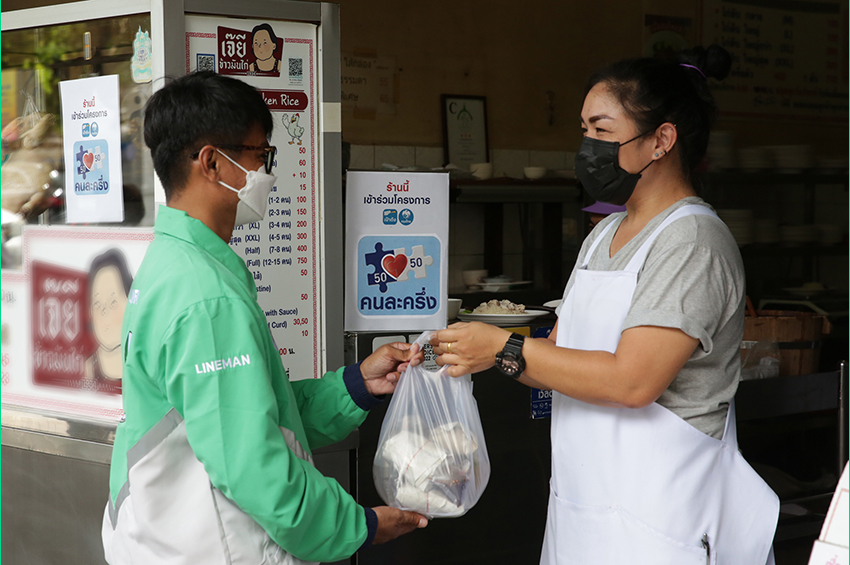 - สำหรับโครงการคนละครึ่งเฟส 5 รัฐให้เงินช่วยเหลือ 800 บาท LINE MAN อัดฉีดเพิ่มสูงสุดอีก 800 บาท เพื่อช่วยค่าครองชีพลูกค้าและดันยอดขายเพิ่มให้กับร้านอาหารตลอดโครงการฯ
