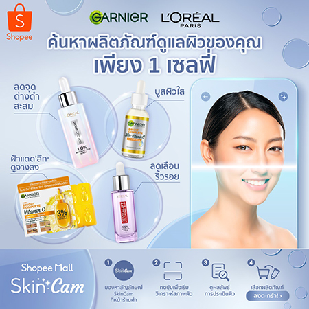 แพลตฟอร์มอีคอมเมิร์ซชั้นนำในเอเชียตะวันออกเฉียงใต้และไต้หวัน ส่ง SkinCam เครื่องมือวิเคราะห์สภาพผิวด้วยปัญญาประดิษฐ์หรือ AI ยกระดับประสบการณ์การซื้อผลิตภัณฑ์ดูแลผิวพรรณให้กับนักช้อปออนไลน์ ที่ซื้อผลิตภัณฑ์ดูแลผิวแบรนด์ของลอรีอัล ประเทศไทย ได้แก่ ลอรีอัล ปารีส (L'Oréal Paris) การ์นิเย่ (Garnier) ลา โรช-โพเซย์ (La Roche-Posay) วิชี่ (Vichy) และ เซราวี (CeraVe) พร้อมจัดโปรโมชันให้กับลูกค้าที่เลือกซื้อผลิตภัณฑ์ผ่านแอปฯ ช้อปปี้ รับส่วนลดคอยน์คืนสูงสุดถึง 180 คอยน์!