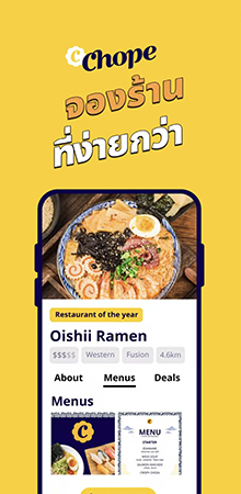 “โช้ป” (Chope) แอปพลิเคชันจองร้านอาหารและซื้อดีลส่วนลดชั้นนำ ที่ให้บริการใน 7 เมืองเด่นของภูมิภาค ได้แก่ กรุงเทพฯ, ภูเก็ต, สิงคโปร์, ฮ่องกง, เซี่ยงไฮ้, บาหลี และจาการ์ตา ในคอนเซ็ปต์ 'มื้ออร่อยที่ง่ายกว่า' รุกตลาดแอปจองร้านอาหารในไทยหลังวิกฤตโควิด ทำให้เรื่องการทานอาหารไฟน์ ไดนิ่ง และมิชลินสตาร์เป็นเรื่องง่ายแค่เพียงปลายนิ้ว จัดเต็มโปรแกรมสิทธิพิเศษและรีวอร์ดมากมาย จับมือพันธมิตรร้านอาหารชั้นนำกว่า 500 ร้านในกรุงเทพฯ และภูเก็ต พร้อมเปิดตัวแคมเปญ Diners’ Choice 2022 เป็นครั้งแรกในประเทศไทย ชวนลูกค้าร่วมโหวตเลือกสุดยอดร้านอาหาร 7 หมวด ลุ้นรับรางวัลสุดพิเศษ มุ่งเป้ากลุ่มคนอายุ 25-44 ปีที่ชื่นชอบการทานอาหารไฟน์ ไดนิ่ง และมิชลินสตาร์ พร้อมเดินหน้าขยายฐานลูกค้าเพิ่มขึ้น 2 เท่าภายในสิ้นปี 2565