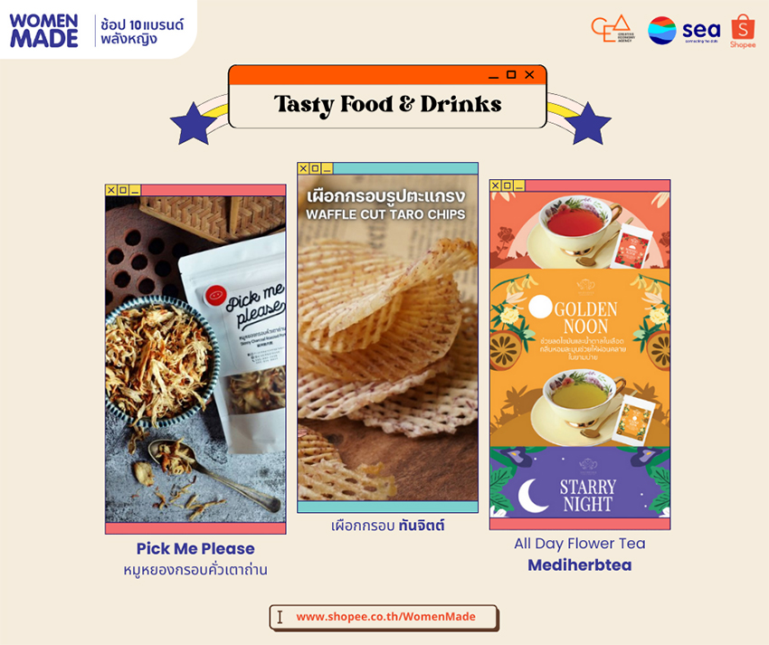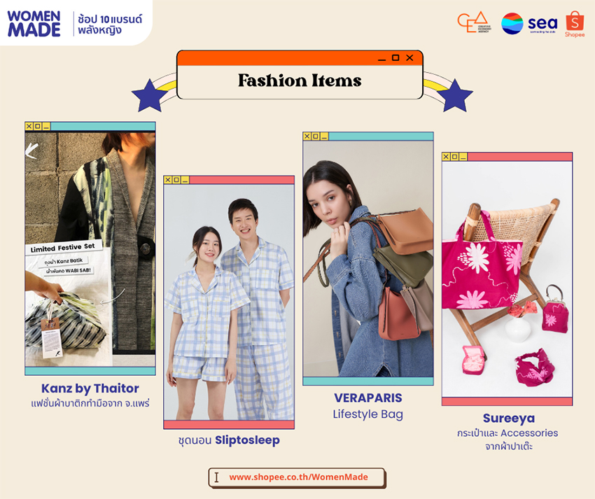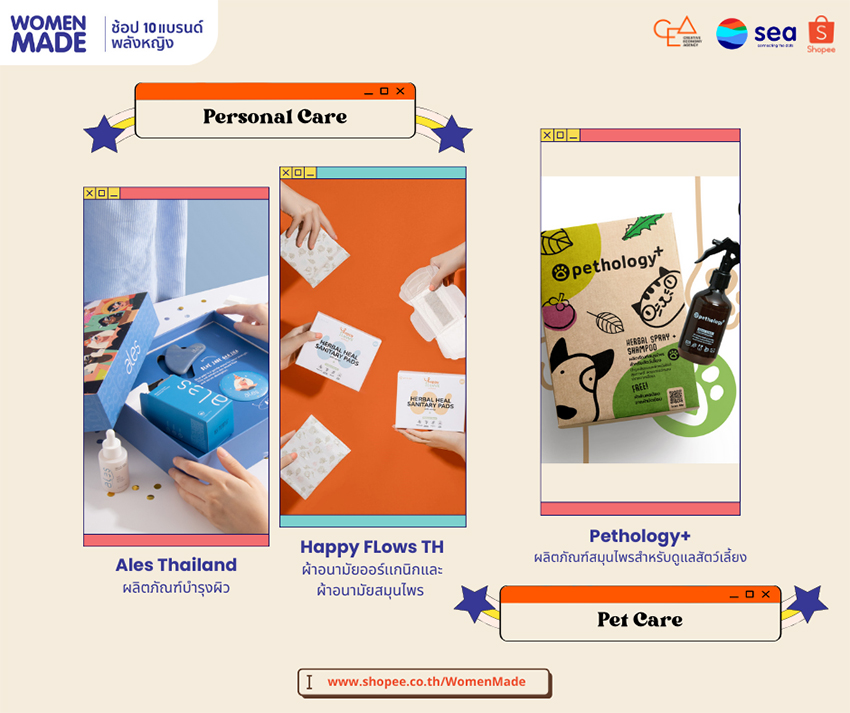 Sea (ประเทศไทย) และช้อปปี้ (Shopee) ซึ่งเป็นธุรกิจอีคอมเมิร์ซภายในเครือ ร่วมกับ สำนักงานส่งเสริมเศรษฐกิจสร้างสรรค์ (CEA) เปิดตัวแคมเปญ ‘Women Made ช้อป 10 แบรนด์พลังหญิง’ ชวนช้อปสินค้าคอลเลคชั่นพิเศษช่วงปีใหม่บนช้อปปี้ พร้อมมอบโปรโมชั่นส่วนลดสุดปัง 15% ตั้งแต่วันที่ 1 มกราคม - 15 กุมภาพันธ์ 2566 เติมความสุขช่วงปีใหม่ให้นักช้อป พร้อมสนับสนุนผู้ประกอบการหญิงชาวไทยให้เติบโตอย่างเต็มศักยภาพ