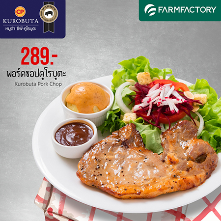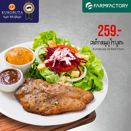 เปิดแคมเปญ ‘FARMFACTORY’s Steak’ พร้อม 2 เมนูใหม่ ด้วยวัตถุดิบหลักจาก CP Kurobuta (ซีพี-คูโรบูตะ) ได้แก่ 'สเต๊กพอร์คชอปคุโรบูตะ' เนื้อติดกระดูกฉ่ำๆ หมักด้วยพริกไทยดำ และ 'สเต๊กหมูดำคุโรบูตะพริกไทยดำ' คัดเลือกส่วนหัวไหล่หมักพริกไทยดำ นุ่ม หอม ฉ่ำ เพื่อเป็นทางเลือกให้ลูกค้ากลุ่มวัยรุ่น ท่ามกลางกระแส Y2K ที่กำลังฮิตมาแรง และสายเฮลตี้ใส่ใจสุขภาพ รับประทานคู่ผักสลัดสดใหม่ Signature ของร้าน พร้อมมันบดราดซอสเกรวี่ และซอสบาร์บีคิวที่หอมเครื่องเทศพิเศษกว่าใคร