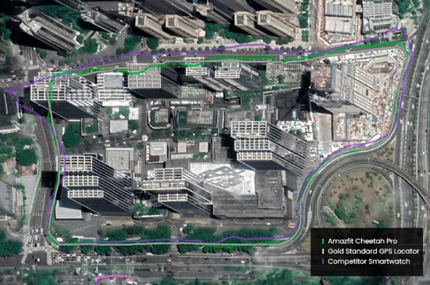นอกเหนือจาก MaxTrack™ เทคโนโลยีชั้นนำของอุตสาหกรรม ซึ่งใช้ทั้งสัญญาณดาวเทียม L1 และ L5 เพื่อระบุตำแหน่งแบบดูอัลแบนด์ที่แม่นยำแล้ว สมาร์ทวอทช์ซีรีส์ อเมซฟิต ชีตาห์ ยังรองรับระบบดาวเทียมหกระบบเพื่อให้ครอบคลุมผู้ใช้งานทุกพื้นที่ที่พวกเขาต้องการวิ่ง เพื่อนำความแม่นยำที่น่าทึ่งนี้ไปใช้ในแบบเรียลไทม์ ผู้ใช้งานสามารถนำเข้าข้อมูลเส้นทางและลงสีแผนที่ออฟไลน์บนพื้นที่กิจกรรมที่วางแผนไว้ได้จากแอปพลิเคชัน Zepp เพื่อการนำทางที่แม่นยำจากข้อมือและเพิ่มการรับรู้ทิศทางขณะวิ่ง