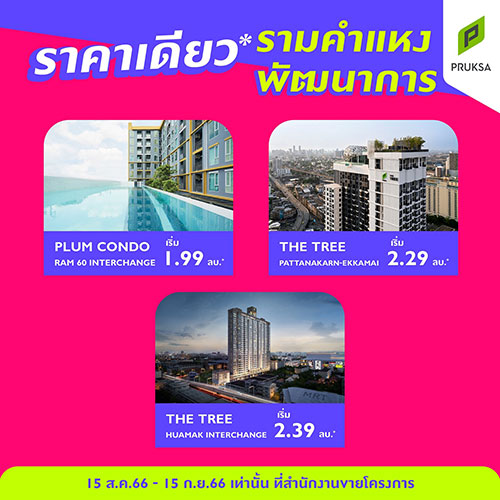 พฤกษา ขนทัพ 13 คอนโดทำเลคุณภาพทั่วเมือง จัดแคมเปญกระชากใจ “1 Price Fits All” พร้อมท้าชนทุกดีล กับการเปิดหน้าตักรวบรวมห้องหลายแบบจากแต่ละโครงการ ให้ลูกค้าเลือกซื้อได้ในราคาเดียว* เริ่ม 1.55 – 5.69 ล้านบาท* พร้อมโปรโมชันมากมาย และลุ้นรับเพิ่มทอง มูลค่ารวมกว่า 500,000 บาท* ตั้งแต่วันนี้ – 15 กันยายน 2566