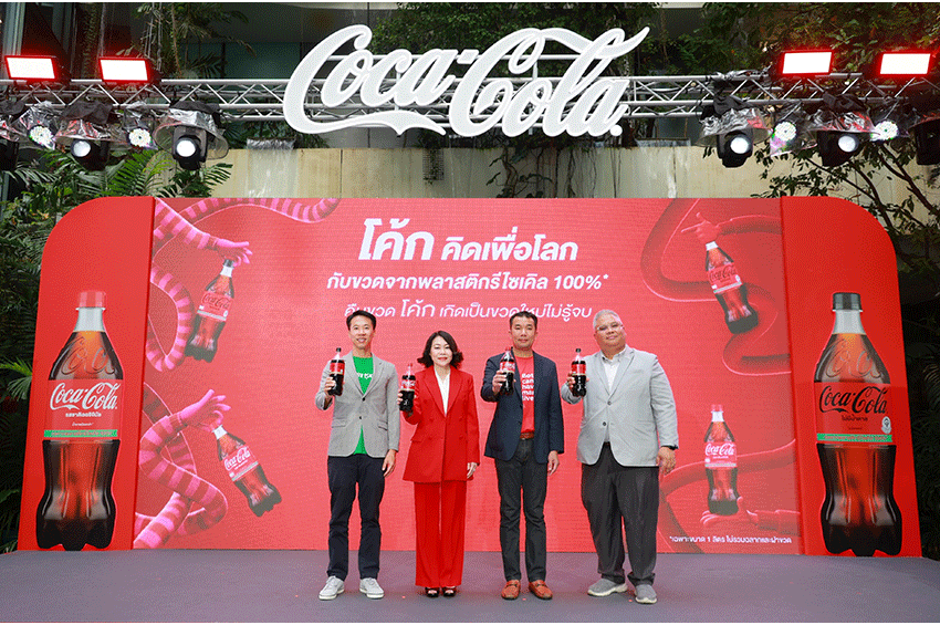 ปัจจุบัน ในกว่า 40 ประเทศทั่วโลก “โคคา-โคล่า” มีผลิตภัณฑ์อย่างน้อย 1 แบรนด์ที่ใช้บรรจุภัณฑ์ที่ผลิตจากพลาสติก PET รีไซเคิล 100% ไม่รวมฉลากและฝาขวด อาทิ ในอินโดนีเซีย เมียนมา เวียดนาม และล่าสุดในไทย การใช้บรรจุภัณฑ์ดังกล่าวสอดคล้องกับเป้าหมายในระดับโลกของ “โคคา-โคล่า” ที่ต้องการส่งเสริมความยั่งยืน โดยมุ่งที่จะทำให้บรรจุภัณฑ์ของ “โค้ก” สามารถรีไซเคิลได้ 100% ภายในปี 2568 และใช้บรรจุภัณฑ์ที่ผลิตจากวัสดุรีไซเคิลอย่างน้อย 50% ภายในปี 2573 โดยในประเทศไทย ขวด “โค้ก” ที่ผลิตจากพลาสติกรีไซเคิล 100% ไม่รวมฉลากและฝาขวด ผ่านกระบวนการผลิตที่ได้มาตรฐาน และใช้เทคโนโลยีจากบริษัท เอ็นวิคโค จำกัด ซึ่งผ่านการรับรองความปลอดภัยด้านอาหาร โดยสำนักงานคณะกรรมการอาหารและยาของไทย และตรงตามมาตรฐานการผลิตสินค้าระดับโลกของ “โคคา-โคล่า”