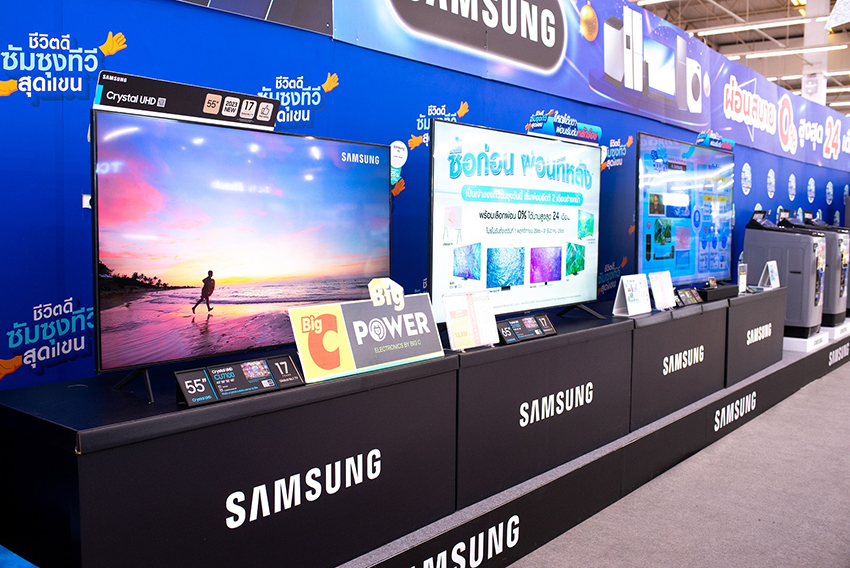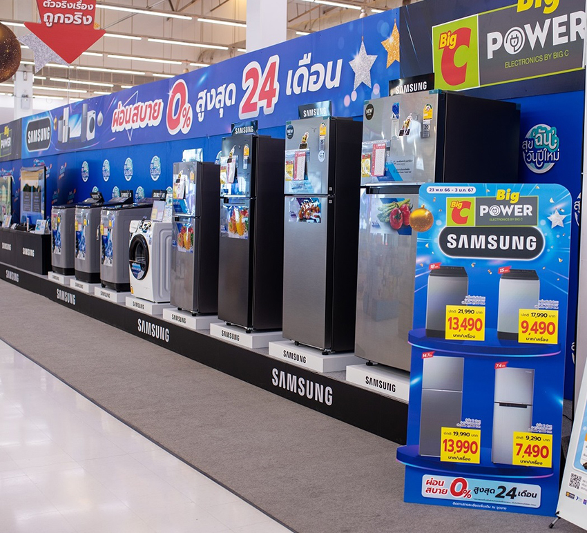 - สมาชิกบิ๊กพอยต์ ที่ซื้อสินค้าแบรนด์ซัมซุง ครบ 200,000 บาท ขึ้นไป รับสิทธิ์เป็นผู้โชคดี รับฟรีของรางวัลพิเศษ UHD TV 75” รุ่น UA75AU7700KXXT มูลค่า 42,990 บาท หรือ UHD TV 55” รุ่น UA55CU7100KXXT มูลค่า 20,990 บาท หรือ ตู้เย็น ขนาด 4คิว รุ่น RT20 มูลค่า 7,990 บาท