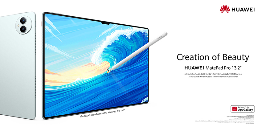 หัวเว่ยมอบเครื่องมือให้ผู้ใช้งานปลดปล่อยความคิดสร้างสรรค์ได้อย่างง่ายดายสอดคล้องกับธีม "Creation of Beauty" แท็บเล็ตของหัวเว่ยได้พัฒนาไปสู่อุปกรณ์เพิ่มประสิทธิภาพการทำงาน ตอบโจทย์ทั้งการทำงานและงานสร้างสรรค์ได้หลากหลาย HUAWEI MatePad Pro 13.2 รวบรวมฟีเจอร์เฉพาะตัวมากมายยกระดับการสร้างสรรค์และการทำงาน On-the-Go ไปสู่อีกระดับ
