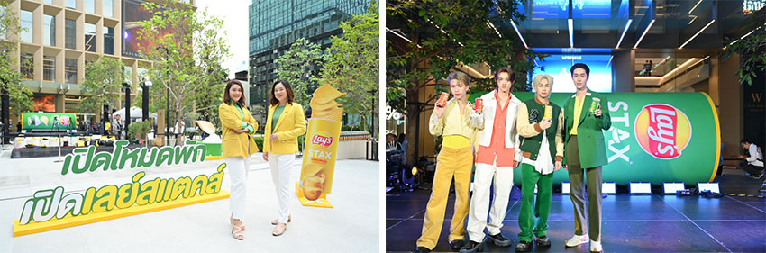 เลย์สแตคส์ (Lay’s Stax) มันฝรั่งขึ้นรูปทอดกรอบแบบกระป๋อง (Fabricated Potato Chip) โดย บริษัท เป๊ปซี่-โคล่า (ไทย) เทรดดิ้ง จำกัด แท็กทีมพระเอกหนุ่มสุดฮอต ต่อ ธนภพ ลีรัตนขจร พรีเซนเตอร์คนล่าสุดของครอบครัวเลย์ ร่วมเปิดโหมดพักฮีลใจชาวออฟฟิศ เพื่อส่งต่อประสบการณ์ใหม่ของการพักเบรกจากการทำงานระหว่างวัน ด้วยกิจกรรม STAX TIME ZONE “เปิดโหมดพัก เปิดเลย์สแตคส์” ที่สุดของแคมเปญแจกชิมสุดยิ่งใหญ่แห่งปีที่เข้าถึงทุกความต้องการของหนุ่มสาวชาวออฟฟิศ โดยมีนางสาวชลกร อภิชาติธรรม ผู้อำนวยการฝ่ายการตลาด ธุรกิจอาหารและขนมขบเคี้ยว และนางสาวพรรณทิพา พงศ์ชัยฤกษ์ ผู้จัดการฝ่ายการตลาด ผลิตภัณฑ์เลย์ บริษัท เป๊ปซี่-โคล่า (ไทย) เทรดดิ้ง จำกัด ให้การต้อนรับ โดยภายในงานมี 3 หนุ่มวง DICE เจย์, อาโป และอเล็กซ์ ร่วมสร้างสีสันและเล่นเกมสุดมันส์กับแฟนคลับผู้โชคดีแบบเอ็กซ์คลูซีฟ ก่อนปิดท้ายกิจกรรมด้วยการปลดล็อคสกิลหูเคลือบทองคำกับมินิคอนเสิร์ตจาก ตู่ ภพธร สุนทรญาณกิจ งานนี้ทำเอาแฟนๆ สนุกสนาน รีเฟรชความสดชื่น และรีแลกซ์กับกิจกรรมผ่อนคลายความเหนื่อยล้าระหว่างวันของคนทำงานได้แบบจัดเต็ม ณ ลานพาร์คสีลม เมื่อวันก่อน
