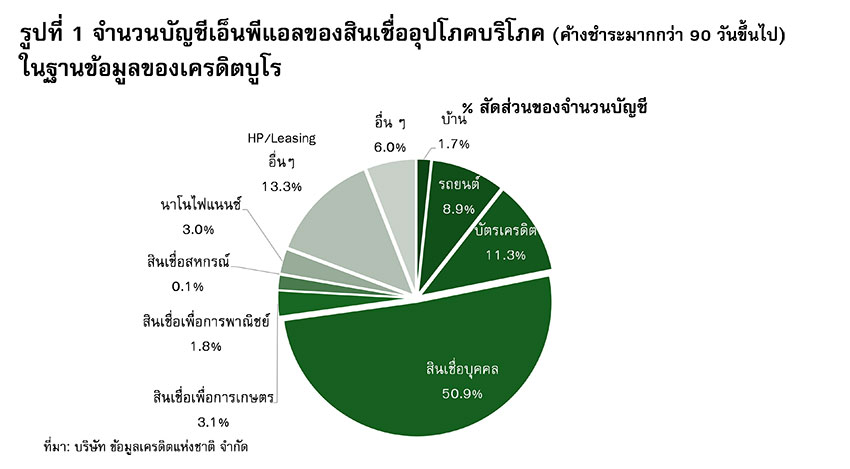 - จากแนวคิดของภาครัฐในการตั้งบริษัทบริหารสินทรัพย์ (AMC) เพื่อซื้อหนี้เสียออกจากระบบ โดยเฉพาะหนี้อุปโภคบริโภคของลูกหนี้รายย่อยที่เครดิตบูโร ซึ่งจากข้อมูล ณ เดือนธันวาคม 2567 เอ็นพีแอลของหนี้ภาคประชาชนที่เครดิตบูโร (หนี้ค้างชำระมากกว่า 90 วันขึ้นไป) มีจำนวน 59 ล้านบัญชี คิดเป็นมูลหนี้ 1.2 ล้านล้านบาทนั้น สะท้อนการตระหนักของภาครัฐ เกี่ยวกับความซับซ้อนของปัญหาหนี้เสียที่ค้างอยู่ในปัจจุบัน ซึ่งมีจำนวนเพิ่มมากขึ้น (รูปที่ 1) หลังจากผ่านวิกฤตมาหลายรอบ โดยเฉพาะในช่วง 5-6 ปีที่ผ่านมา