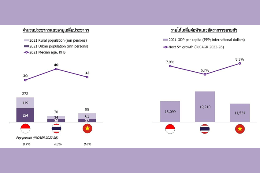 รูปที่ 2: อินโดนีเซียเป็นตลาดการบริโภคขนาดใหญ่และมีแนวโน้มเติบโตดี เมื่อเทียบกับไทยและเวียดนาม