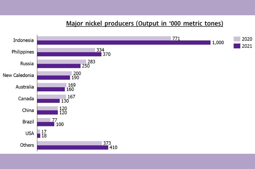 รูปที่ 4: อินโดนีเซียเป็นแหล่งผลิตนิกเกิลรายใหญ่ของโลกด้วยส่วนแบ่งตลาดเกือบ 40% ในปี 2021