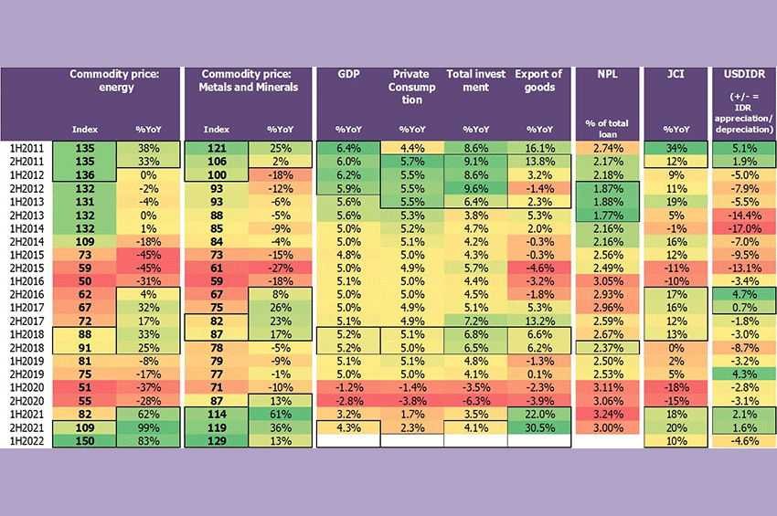 เศรษฐกิจอินโดนีเซียเป็นหนึ่งในประเทศกำลังพัฒนาที่สำคัญในภูมิภาคเอเชีย-แปซิฟิก โดยเศรษฐกิจมีขนาดใหญ่ถึง 1.2 ล้านล้านดอลลาร์สหรัฐฯ ซึ่งใหญ่เป็นอันดับ 6 ในภูมิภาคเอเชีย-แปซิฟิก และใหญ่เป็นอันดับ 1 ในกลุ่มอาเซียน ขณะที่เศรษฐกิจขยายตัวค่อนข้างดีต่อเนื่องในช่วงที่ผ่านมา รวมถึงฟื้นตัวได้ดีจากวิกฤตโรคระบาด COVID-19 (ในปี 2015-2019 อัตราการขยายตัวทางเศรษฐกิจเฉลี่ยอยู่ที่ 5% ต่อปี ก่อนที่จะหดตัวในปี 2020 อยู่ที่ -2.1% และฟื้นตัวในปีถัดมาที่ 3.7% โดยล่าสุดในไตรมาสแรกของปี 2022 ขยายตัว 5% YOY)