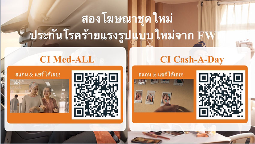 ภาพยนตร์เรื่อง CI Med-ALL ดูแล...แคร์ไม่หยุด ซึ่งได้รับแรงบันดาลใจมาจากความรักระหว่างแม่และลูกสาว สร้างสรรค์ออกมาเป็นเรื่องราวการเดินทางในชีวิตของแม่และลูก ที่แม้ว่าลูกจะต้องเผชิญกับอาการป่วยหนัก แต่ก็ยังได้รับกำลังใจจากแม่และต่างคนก็คอยช่วยเหลือดูแลซึ่งกันและกัน เป็นการดูแลที่ไม่สิ้นสุดของแม่ที่มีให้แก่ลูก ไม่ว่าลูกจะมีอายุเท่าไหร่ ซึ่งตรงกับผลิตภัณฑ์ CI Med-ALL ของ FWD ประกันชีวิต ที่ให้ความคุ้มครองมากกว่าการเจ็บป่วยด้วยโรคร้ายแรง เพราะให้ความคุ้มครองที่ครอบคลุมไปถึงปัญหาด้านสุขภาพอื่นๆ ที่อาจจะตามมาในระหว่างหรือหลังจากที่เป็นโรคร้ายแรง