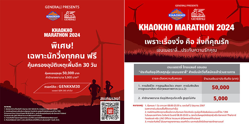 สามารถดูรายละเอียดเพิ่มเติมได้ทาง Facebook : Generali Thailand หรือ Facebook : Khaokho Marathon