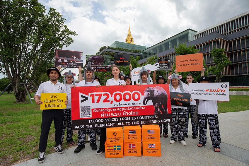 ปัญหาดังกล่าวไม่เพียงแต่อยู่ในความสนใจของคนไทย แต่ยังรับรู้ไปถึงคนในประเทศต่างๆ ทั่วโลกที่ร่วมแสดงเจตจำนงต่อการแก้ปัญหาการทารุณกรรมและยกระดับสวัสดิภาพช้างที่ถูกแสวงหาประโยชน์ในอุตสาหกรรมท่องเที่ยว ผ่านการลงชื่อสนับสนุน ‘ร่าง พ.ร.บ. ช้างไทย’ ฉบับภาคประชาสังคม แล้วกว่า 172,000 คน จาก 26 ประเทศ รวมทั้งบริษัทท่องเที่ยวชั้นนำ 12 บริษัท จากประเทศอังกฤษ อเมริกา แคนาดา สวีเดน และเดนมาร์ค” คุณอรกร กล่าว