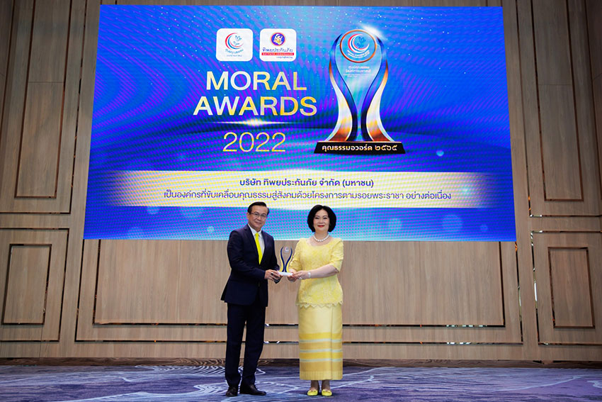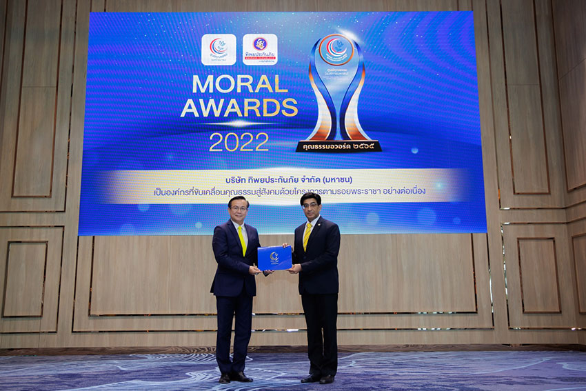 พิธีมอบรางวัล Moral Awards 2022 และเกียรติบัตร ได้รับเกียรติจาก คุณหญิงปัทมา ลีสวัสดิ์ตระกูล ประธานกรรมการศูนย์คุณธรรม และ รศ.นพ.สุริยเดว ทรีปาตี ผู้อำนวยการศูนย์คุณธรรม เป็นผู้มอบรางวัลให้แก่บริษัท ทิพยประกันภัย จำกัด (มหาชน) ซึ่งมี ดร.สมพร สืบถวิลกุล ประธานเจ้าหน้าที่บริหาร บริษัท ทิพย กรุ๊ป โฮลดิ้งส์ จำกัด (มหาชน) และกรรมการผู้จัดการใหญ่ บริษัท ทิพยประกันภัยจำกัด (มหาชน) เป็นผู้รับมอบ ทั้งนี้ยังได้รับเกียรติจาก นายสมใจนึก เองตระกูล ประธานกรรมการ พร้อมด้วยคณะกรรมการฯ ดร.ดนัย จันทร์เจ้าฉาย ประธานมูลนิธิธรรมดี นางวิชชุดา ไตรธรรม ที่ปรึกษากรรมการผู้จัดการใหญ่ ผู้บริหารและพนักงาน บริษัท ทิพยประกันภัย จำกัด (มหาชน) ร่วมในพิธี ณ อาคารทิพยประกันภัย สำนักงานใหญ่ พระราม 3