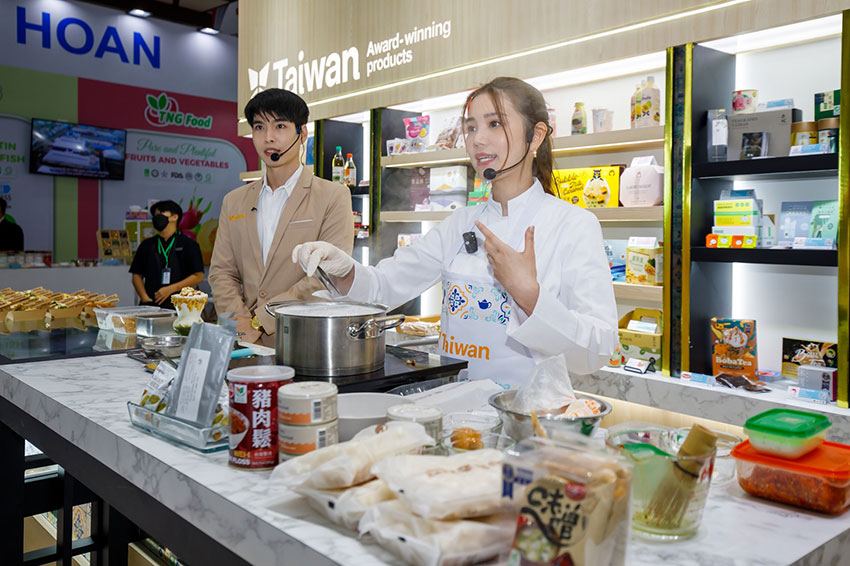 งาน Taiwan Award-Winning Foods Pavilion ในมหกรรม Thaifex Anuga Asia ครั้งนี้ได้รับความสนใจจากทั้งฝั่งผู้ซื้อและผู้ขายอย่างล้นหลามเพราะมีการนำเสนอผลิตภัณฑ์มากถึง 120 รายการจากบริษัทชั้นนำของไต้หวันกว่า 68 แห่ง ซึ่งได้รับรางวัลอาหารยอดเยี่ยมแห่งชาติ โดยผู้เข้าร่วมงานจะลิ้มลองสุดยอดสินค้าต่างๆ จากไต้หวันด้วยตัวเอง ไม่ว่าจะเป็นพายสับปะรดสูตรพิเศษ, บะหมี่คลุกน้ำมันจากห่านผสมหอมแดง, ขนมเปี๊ยะเผือกสูตรเด็ดของไต้หวัน, ชุดขนมนูกัต ตังเมไต้หวัน, เครื่องดื่มจากเห็ดหูหนูขาว, ชุดของฝากไข่ปลากระบอก, ชาสกัดเย็นจากดอกเทรเมลลา, เครื่องดื่มรสพีช-อู่หลงแบบเยลลี่ และผลิตภัณฑ์อื่นๆ อีกจำนวนมาก ที่สำคัญผลิตภัณฑ์เหล่านั้นยังมาพร้อมกับใบรับรองคุณภาพและรางวัลระดับประเทศและนานาชาติ อาทิ Monde Selection, ITQI, Halal, Organic, Clean Label และ A.A. TASTE AWARDS