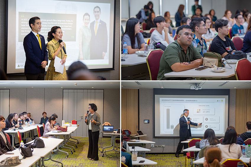 นายอัศวิน - นางฐาปณี เตชะเจริญวิกุล ประธานเจ้าหน้าที่บริหารและกรรมการผู้จัดการใหญ่ และกรรมการรองผู้จัดการใหญ่อาวุโส กลุ่มบีเจซี บิ๊กซี ให้การต้อนรับ ผศ. ดร. ขวัญจิรา ฉัตรพรรณรังสี รองคณบดีฝ่ายบริหารและทรัพยากรมนุษย์ มหาวิทยาลัยธรรมศาสตร์ พร้อมด้วยคณาจารย์ และคณะนักศึกษาจากมหาวิทยาลัยธรรมศาสตร์ และนักศึกษาแลกเปลี่ยนจาก Singapore University of Social Science (SUSS) ประเทศสิงคโปร์ ภายใต้โครงการ SUSS-TU Cultural Immersion Programme เข้าศึกษาดูงานเพื่อถ่ายทอดองค์ความรู้ด้านสิทธิของบุคคลที่มีความหลากหลายทางเพศของประเทศไทย ในฐานะองค์กรเอกชนมีความโดดเด่นในด้านการบริหารความหลากหลาย ตามคำแนะนำจากกรมคุ้มครองสิทธิและเสรีภาพ ณ อาคารบีเจซี เฮ้าส์
