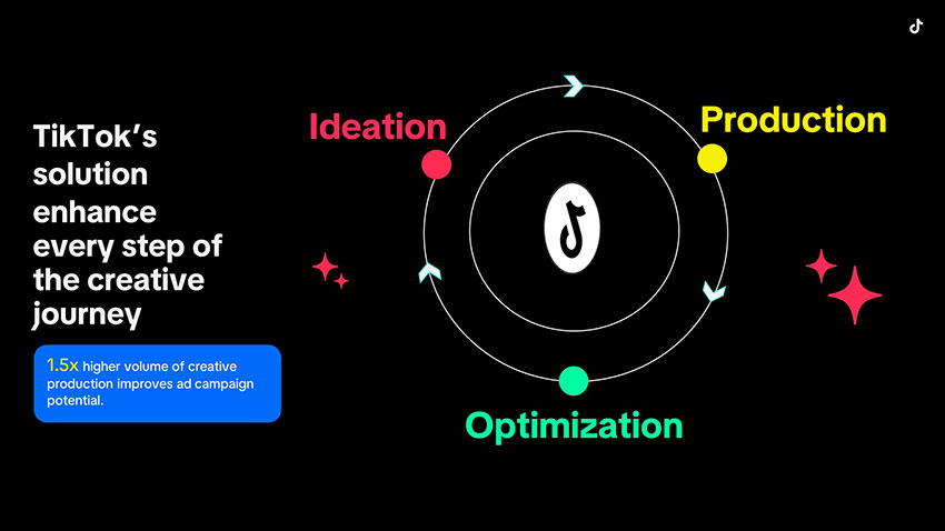 - การผลิต (Production): ทำให้ทุกขั้นตอนตั้งแต่การเขียนสคริปต์ไปจนถึงการผลิตวิดีโอ รวมถึงการปรับแต่งสื่อเป็นเรื่องง่ายและมีประสิทธิภาพ ด้วย Symphony Creative Studio ที่ช่วยเพิ่มประสิทธิภาพในการทำงานเพื่อให้แบรนด์สามารถยกระดับความคิดสร้างสรรค์อย่างไร้ขีดจำกัด ซึ่ง TikTok อยากเชิญชวนแบรนด์ต่างๆ มาทดสอบและเรียนรู้ร่วมกัน เพื่อที่จะทำให้ความคิดสร้างสรรค์ที่โดดเด่นเป็นเรื่องง่ายและทรงพลังยิ่งขึ้น