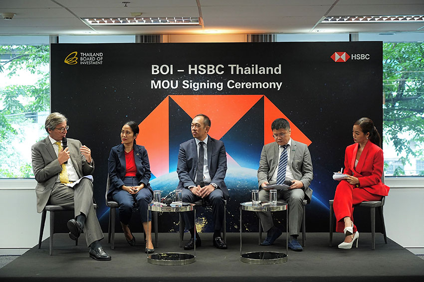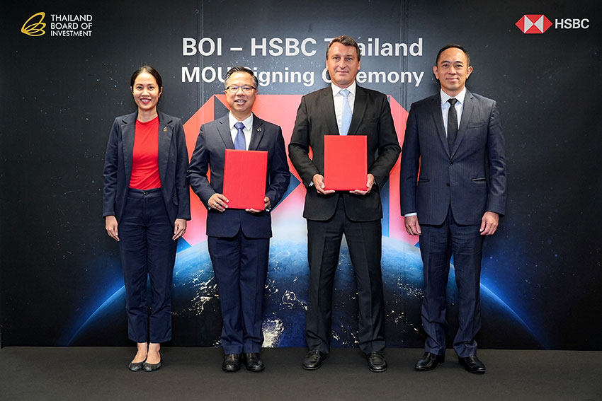 สำนักงานคณะกรรมการส่งเสริมการลงทุน (บีโอไอ) และธนาคารเอชเอสบีซี ประเทศไทย ร่วมลงนามบันทึกข้อตกลงความร่วมมือเพื่อผลักดันประเทศไทยสู่ศูนย์กลางการลงทุนของเอเชียตะวันออกเฉียงใต้ และส่งเสริมการลงทุนโดยตรงจากต่างประเทศ (FDI) เพื่อเสริมสร้างขีดความสามารถของทั้งสององค์กร ผ่านการให้คำปรึกษาด้านการลงทุนในไทยอย่างครบวงจร โดยอาศัยความแข็งแกร่งของเครือข่ายธุรกิจของธนาคารเอชเอสบีซีใน 62 ประเทศและเขตการปกครอง ความเชี่ยวชาญในการสนับสนุนองค์กรข้ามชาติในการขยายธุรกิจระหว่างประเทศ พร้อมทั้งแพลตฟอร์มด้านการเงินดิจิทัลของธนาคารเอชเอสบีซี เข้ามาช่วยอำนวยความสะดวกให้นักลงทุนต่างชาติเข้าถึงโอกาสในการลงทุนและขยายธุรกิจในประเทศไทย