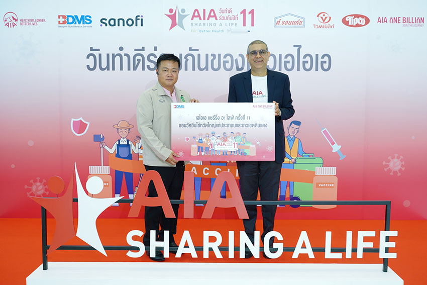 เอไอเอ ประเทศไทย เดินหน้าจัดกิจกรรม “เอไอเอ แชร์ริ่ง อะ ไลฟ์” (AIA Sharing A Life) ครั้งที่ 11 หรือวันทำดีร่วมกันของชาวเอไอเอ เป็นกิจกรรมเพื่อตอบแทนสังคมครั้งยิ่งใหญ่ประจำปีของชาวเอไอเอ โดยได้รับความร่วมมือร่วมใจจากเพื่อนพนักงาน พลังตัวแทน และพันธมิตร ร่วมกันจัดกิจกรรมในครั้งนี้ภายใต้แนวคิด “For Better Health” ตอกย้ำถึงความเป็นผู้นำในด้านการดูแลสุขภาพเพื่อสนับสนุนให้คนไทยมีสุขภาพและชีวิตที่ดีขึ้น ตามคำมั่นสัญญา Healthier, Longer, Better Lives ด้วยการมอบบริการฉีดวัคซีนไข้หวัดใหญ่ 4 สายพันธุ์ให้แก่ประชาชนและผู้ด้อยโอกาสโดยไม่มีค่าใช้จ่ายจำนวนทั้งสิ้น 10,000 เข็ม ซึ่งได้จัดศูนย์บริการฉีดวัคซีนไข้หวัดใหญ่ทั้งสิ้น 11 แห่งในจังหวัดต่าง ๆ ได้แก่ กรุงเทพมหานคร เชียงใหม่ พิษณุโลก นครปฐม อุดรธานี นครราชสีมา ชลบุรี จันทบุรี และสงขลา โดยได้รับความร่วมมือจากโรงพยาบาลในเครือ BDMS และซาโนฟี่ ประเทศไทยซึ่งกิจกรรมดังกล่าวถือเป็นส่วนหนึ่งของพันธกิจ AIA One Billion ที่เอไอเอ มุ่งสนับสนุนผู้คนกว่าหนึ่งพันล้านคนทั่วภูมิภาคเอเชียแปซิฟิกให้มีสุขภาพและชีวิตที่ดีขึ้น ภายในปี 2573
