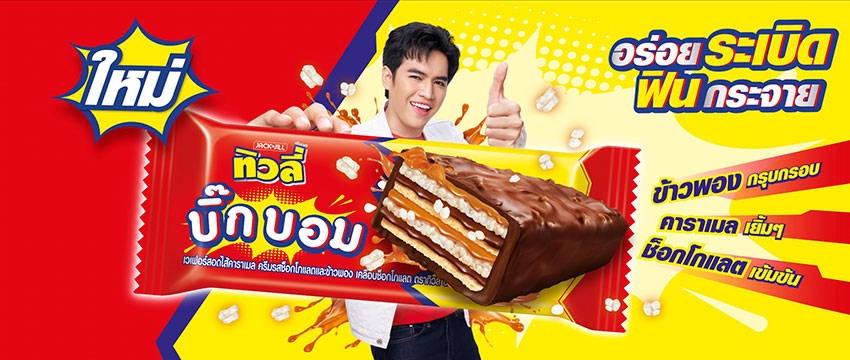 อร่อยระเบิดฟินกระจายไปกับ ทิวลี่ บิ๊กบอม เวเฟอร์เคลือบช็อกโกแลตสอดไส้คาราเมลและข้าวพอง สินค้าใหม่จากทิวลี่ กับขนาด 20 กรัม ในราคา 5 บาท หาซื้อได้ที่ร้านสะดวกซื้อ 7-Eleven, บิ๊กซี, โลตัส, แมคโคร, ห้างสรรพสินค้าชั้นนำ และร้านค้าทั่วประเทศ