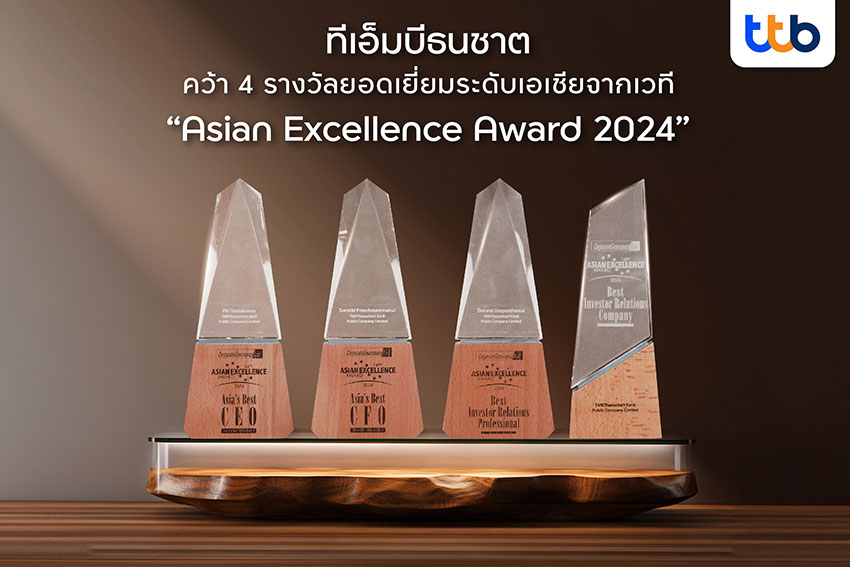 นางสาวสมคิด ปรีชาสัมมกุล ประธานเจ้าหน้าที่บริหารด้านการเงิน ทีเอ็มบีธนชาต รับมอบ 4 รางวัลยอดเยี่ยมระดับเอเชียจากเวที “Asian Excellence Award 2024” ซึ่งถือเป็นหนึ่งในธนาคารที่ได้รับรางวัลนี้ ประกอบด้วย รางวัลประเภทบุคคล 3 รางวัล ได้แก่ “รางวัลซีอีโอยอดเยี่ยมแห่งเอเชีย” (Asia’s Best CEO) มอบให้ นายปิติ ตัณฑเกษม ประธานเจ้าหน้าที่บริหาร ทีเอ็มบีธนชาต จากความสำเร็จในการวางกลยุทธ์การเป็นธนาคารเพื่อความยั่งยืนผ่านกรอบแนวคิด B+ESG ที่ผสมผสาน B (Business) เข้ากับ ESG (Environment, Social และ Governance) เป็นเนื้อเดียวกัน เพื่อสนับสนุนให้ลูกค้าของธนาคารดำเนินชีวิตหรือธุรกิจได้อย่างมั่นคงและยั่งยืนอย่างแท้จริง ภายใต้ปรัชญา Make REAL Change เปลี่ยน… เพื่อให้ชีวิตคุณดีขึ้น เพราะเชื่อว่าการดำเนินธุรกิจและความยั่งยืนไม่สามารถแยกออกจากกันได้ ทุกกลยุทธ์และแนวทางการดำเนินธุรกิจของธนาคารจึงต้องอยู่บนพื้นฐานของการสร้างการเติบโตและความยั่งยืน ครอบคลุมทั้งด้านธุรกิจ สังคม สิ่งแวดล้อม รวมถึงการกำกับดูแลที่ครบถ้วน การบริหารความเสี่ยงที่มีประสิทธิภาพ ไม่ก่อให้เกิดผลกระทบเชิงลบ ส่งผลให้นักลงทุนทั้งรายย่อยและสถาบันในประเทศและต่างประเทศเชื่อมั่น “รางวัลซีเอฟโอยอดเยี่ยมแห่งเอเชีย” (Asia’s Best CFO) มอบให้ นางสาวสมคิด ปรีชาสัมมกุล ประธานเจ้าหน้าที่บริหารด้านการเงิน ทีเอ็มบีธนชาต จากความสำเร็จในการบริหารการเงินอย่างโปร่งใส มุ่งสร้างคุณค่าระยะยาวให้แก่ผู้ถือหุ้น และ “รางวัลนักลงทุนสัมพันธ์ยอดเยี่ยมแห่งเอเชีย” (Best Investor Relations Professional) มอบให้ นางสาวดารารัตน์ อุระพันธมาศ หัวหน้านักลงทุนสัมพันธ์ จากความสำเร็จในการสร้างกิจกรรมนักลงทุนสัมพันธ์ และรักษาความเชื่อมั่นจากนักลงทุนและผู้ถือหุ้นสม่ำเสมอ สุดท้าย คือ รางวัลประเภทองค์กร ได้แก่ “รางวัลบริษัทนักลงทุนสัมพันธ์ยอดเยี่ยมแห่งเอเชีย” (Best Investor Relations Company) ตอกย้ำความโปร่งใสและธรรมาภิบาลที่ดีในการดำเนินธุรกิจ สะท้อนความมุ่งมั่นของธนาคารในการสนับสนุนผู้มีส่วนได้เสียทุกฝ่าย ไม่ว่าจะเป็นลูกค้า คู่ค้า พันธมิตร ชุมชน และสังคม เพื่อเสริมสร้างความมั่นคงและยั่งยืนในระยะยาวได้อย่างแท้จริง