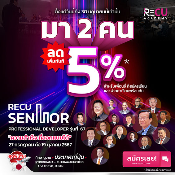 ผู้บริหารอสังหาฯ ยุคนี้หยุดไม่ได้ที่ต้องเสริมอาวุธเติมความรู้อยู่ตลอด ยิ่งได้เรียนจากนักบริหารมืออาชีพขั้นสูง ยิ่งห้ามพลาด คอร์สเรียนหลักสูตรกลยุทธ์การบริหารธุรกิจอสังหาริมทรัพย์ RECU SENIOR: PROFESSIONAL DEVELOPER จาก RE-CU Academy รุ่นที่ 67 เริ่มส่งต่อความสำเร็จที่ออกแบบได้แล้ววันนี้ โดยกูรูบิ๊กเนมมากกว่า 20 คน อาทิ อธิป พีชานนท์ (ศุภาลัย) กิตติพล ปราโมช ณ อยุธยา (สัมมากร) นิวัติ ลมุนพันธ์ (ออริจิ้น) และ รศ.มานพ พงศทัต จากจุฬาลงกรณ์มหาวิทยาลัย ที่จะมาถ่ายทอดความรู้กันแบบไม่กั๊ก ทั้งด้านกฎหมาย การตลาดยุคใหม่ เทคนิคการบริหาร พร้อมเรียนประสบการณ์จริง เคสจริง จากเหล่าตัวจริงของวงการที่หาฟังจากที่ไหนไม่ได้ การันตีความเข้มข้นแบบขั้นสุดจากผู้จบหลักสูตรแล้วเกือบ 8,000 คน