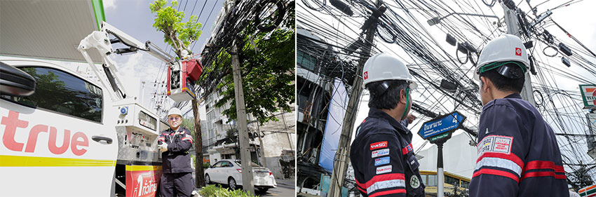 ถึงคิวเคลียร์สายสื่อสารย่านถนนสุทธิสารวินิจฉัย…ทรู คอร์ปอเรชั่น โดย นายเลิศรัตน์ รตะนานุกูล หัวหน้าสายงานรัฐกิจสัมพันธ์ นำทีมวิศวกรพื้นที่ร่วมปฏิบัติการสนับสนุน การไฟฟ้านครหลวง (MEA) โดย นายทวีศักดิ์ สมานสิน ผู้ช่วยผู้ว่าการฯ พร้อมด้วย กรุงเทพมหานคร โดย นายวิศณุ ทรัพย์สมพล รองผู้ว่าราชการฯ และภาคีเครือข่ายที่เกี่ยวข้อง ร่วมดำเนินงานรื้อถอนสายสื่อสารที่ยกเลิกการใช้งานแล้วบนเสาไฟฟ้า หลังจากติดตั้งโครงข่ายเส้นใยแก้วนำแสง Fiber Optic Cable (FOC) ฝังในระดับใต้ดินเพื่อใช้ทดแทนสายสื่อสารเดิม ย่านถนนสุทธิสารวินิจฉัย ตั้งแต่ แยกพหลโยธิน ถึง แยกถนนวิภาวดีรังสิต รวมระยะทาง 1.6 กิโลเมตร ทั้งนี้ ทรู คอร์ปอเรชั่น ยึดหลักการดำเนินธุรกิจบนพื้นฐานโทรคมนาคมที่ยั่งยืนและรับผิดชอบต่อสังคม โดยสนับสนุนนโยบายจัดระเบียบสายสื่อสารและนำสายสื่อสารลงใต้ดิน ตามนโยบายภาครัฐบาลอย่างต่อเนื่อง รวมถึงพร้อมให้ความร่วมมือกับพันธมิตรทุกภาคส่วนในการปรับปรุงภูมิทัศน์ของเมืองให้เกิดทัศนียภาพที่สวยงามเป็นระเบียบเรียบร้อยและมีความปลอดภัยมากยิ่งขึ้น