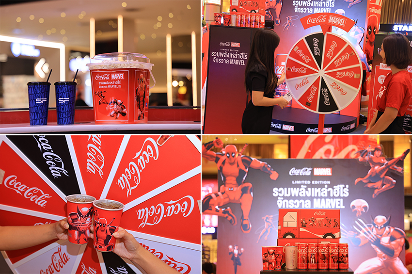 กลุ่มธุรกิจโคคา-โคล่า ในประเทศไทย อันประกอบไปด้วย บริษัท ไทยน้ำทิพย์ คอร์ปอเรชั่น จำกัด บริษัท หาดทิพย์ จำกัด (มหาชน) และบริษัท โคคา-โคล่า (ประเทศไทย) จำกัด ผนึกพันธมิตรโรงภาพยนตร์ชั้นนำ เมเจอร์ ซีนีเพล็กซ์ (Major Cineplex) และ โรงภาพยนตร์ในเครือ เอส เอฟ (SF Cinema) ต่อยอดแคมเปญ COCA-COLA x Marvel: The Heroes มอบปรากฏการณ์ความซ่าสุดเอ็กซ์คลูซีฟเอาใจแฟน ๆ ของเหล่าซูเปอร์ฮีโร่ในจักรวาลมาร์เวล โดยจัดบูธกิจกรรมพิเศษที่โรงภาพยนตร์พารากอน ซีนีเพล็กซ์ และ เอส เอฟ เวิลด์ ซีเนม่า ศูนย์การค้าเซ็นทรัลเวิลด์ ตั้งแต่วันที่ 24 – 28 กรกฎาคม 2567 เมื่อผู้บริโภคซื้อชุด Marvel Combo Set ได้สิทธิ์ถ่ายภาพโฟโต้การ์ดสุดลิมิเต็ดลวดลายพิเศษของเหล่ามาร์เวลฮีโร่ และเล่นเกมส์หมุนวงล้อลุ้นรับของรางวัล อาทิ เครื่องดื่ม “โค้ก” ดีไซน์ลิมิเต็ด อิดิชั่น แก้วน้ำเปลี่ยนสีตามอุณหภูมิ หรือกิฟต์บ็อกสุดเอ็กซ์คลูซีฟ หรือซื้อสินค้าตามเงื่อนไขที่กำหนดเพื่อรับสิทธิ์ร่วมสนุกถ่ายโฟโต้การ์ด กิจกรรมพิเศษในครั้งนี้เป็นส่วนหนึ่งในการเฉลิมฉลองการเป็นพันธมิตรร่วมกันอย่างยาวนานของกลุ่มธุรกิจโคคา-โคล่า ในประเทศไทย กับ เมเจอร์ ซีนีเพล็กซ์ (Major Cineplex) และ โรงภาพยนตร์ในเครือ เอส เอฟ (SF Cinema) และส่งความสุขโดยนำคาแรคเตอร์ของเหล่าซูเปอร์ฮีโร่ในจักรวาลมาร์เวลมาโลดแล่นสร้างความบันเทิง มอบประสบการณ์แบบที่ไม่เคยมีมาก่อนกับบรรจุภัณฑ์ดีไซน์ลิมิเต็ดของเครื่องดื่ม “โค้ก” รสชาติออริจินัลและ “โค้ก” ซีโร่ ที่มีลายกราฟฟิคสุดเท่ของเหล่าฮีโร่ 10 ดีไซน์ ที่มาพร้อมของรางวัลพิเศษ กับกิจกรรมและโปรโมชั่นที่โรงภาพยนตร์ชั้นนำทั่วประเทศ