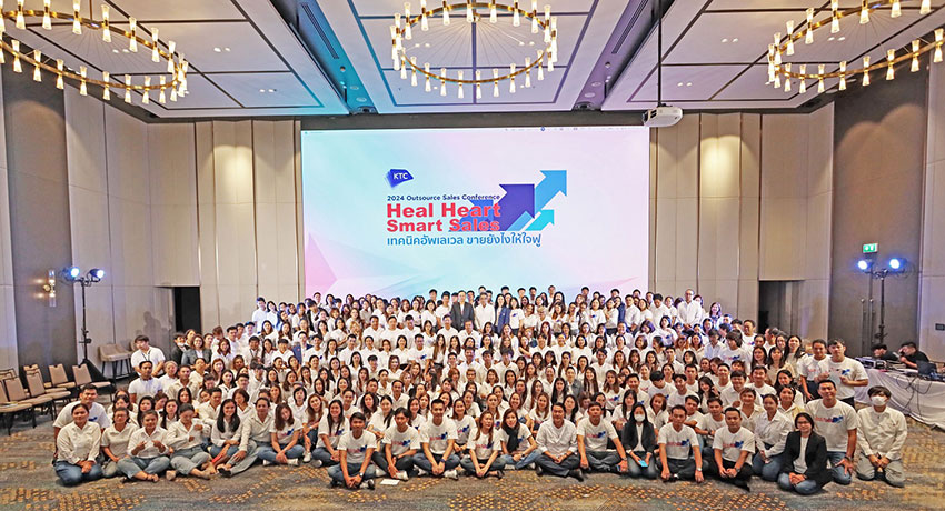 นายปิยศักดิ์ เตชะเสน (ที่ 2 จากซ้าย) รองประธานเจ้าหน้าที่บริหารอาวุโส พร้อมด้วยทีมบริหารช่องทางการขาย “เคทีซี” หรือ บริษัท บัตรกรุงไทย จำกัด (มหาชน) จัดงานสัมมนาใหญ่ประจำปี 2024 (Outsource Sales Conference) พร้อมเปิดเวทีทอล์คทรงพลัง “Heal Heart Smart Sales : เทคนิคอัพเวล ขายยังไงให้ใจฟู" ให้กับผู้แนะนำผลิตภัณฑ์ทางการเงินเคทีซี (อิสระ) ที่ผ่านการคัดเลือกจากทั่วประเทศกว่า 300 คน เพื่อเสริมสร้างแรงบันดาลใจ และปลุกพลังพิชิตเป้าหมายสู่ความสำเร็จในอาชีพนักขายจากสองวิทยากร ดีเจพี่อ้อย - นภาพร ไตรวิทย์วารีกุล (กลางซ้าย) กูรูด้านความสัมพันธ์ ที่มาร่วมปันสุขเติมเต็มหัวใจอย่างยั่งยืน ในหัวข้อ "วิธีฮีลใจ วันไหนๆ ก็ใจฟู" และรศ.ดร.โอภาส กิจกำแหง (กลางขวา) อาจารย์นักการตลาด ผู้จุดติดศักยภาพงานขาย พิชิตเป้าหมายสู่ความสำเร็จ ในหัวข้อ "Good & Growth Mindset get 3EX" พร้อมเปิดช่วงให้นักขายแลกเปลี่ยนมุมมอง และแชร์เป้าหมายการทำงานและการใช้ชีวิต เมื่อเร็วๆ นี้ ณ โรงแรม Avani Sukhumvit