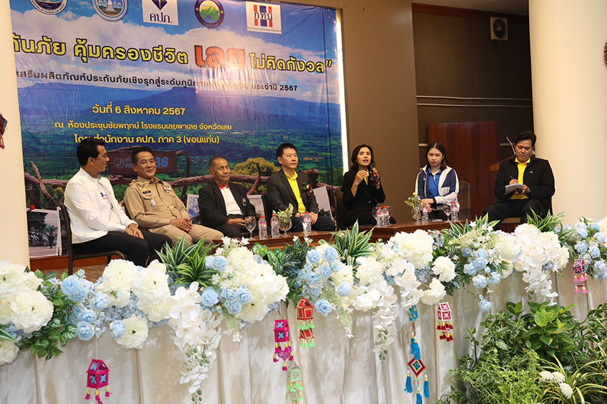 ในโอกาสนี้ รองเลขาธิการ คปภ. ด้านกำกับคนกลางและประกันภัยภูมิภาค เปิดเผยว่า สำนักงาน คปภ. มีนโยบายส่งเสริมให้ประชาชนทั่วประเทศเข้าถึงระบบประกันภัยและสามารถนำระบบประกันภัยใช้เป็นเครื่องมือในการบริหารความเสี่ยงได้อย่างเหมาะสม จึงได้จัดโครงการส่งเสริมผลิตภัณฑ์ประกันภัยเชิงรุกระดับภูมิภาคอย่างยั่งยืนทั่วประเทศ รวม 9 ภาค และในครั้งนี้ได้เลือกจังหวัดเลย ซึ่งเป็นหนึ่งในจังหวัดภายใต้การกำกับดูแลของสำนักงาน คปภ. ภาค 3 (ขอนแก่น) เป็นพื้นที่จัดโครงการส่งเสริมผลิตภัณฑ์ประกันภัยเชิงรุกสู่ระดับภูมิภาคอย่างยั่งยืน ปี 2567 โดยที่ผ่านมาจังหวัดเลยได้เผชิญกับความเสี่ยงภัยในด้านต่าง ๆ เช่น เหตุเพลิงไหม้อาคารพาณิชย์ครั้งใหญ่ใจกลางเมืองเลย และเหตุเพลิงไหม้โกดังโรงงานยางพาราที่อำเภอนาด้วง ส่งผลให้ทรัพย์สินและกิจการได้รับความเสียหาย ธุรกิจหยุดชะงัก ประกอบกับโครงสร้างเศรษฐกิจและอุตสาหกรรมของจังหวัดเลยมีลักษณะผสมกลมกลืนระหว่างภาคอุตสาหกรรมการเกษตรและการท่องเที่ยวทางธรรมชาติ โดยประชากรส่วนใหญ่ ประกอบอาชีพเกษตรกรรม รองลงมา คือ การรับจ้าง การค้าขาย การอุตสาหกรรม การทำเหมืองแร่ อีกทั้งยังมีผู้ประกอบการรถรับนักท่องเที่ยวเยี่ยมชมแหล่งท่องเที่ยวต่าง ๆ