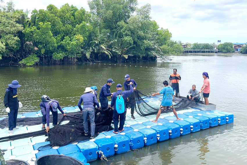 บริษัท เจริญโภคภัณฑ์อาหาร จำกัด (มหาชน) หรือ ซีพีเอฟ ขับเคลื่อนสนับสนุนกรมประมงร่วมปฏิบัติการไล่ล่าปลาหมอคางดำอย่างต่อเนื่อง ล่าสุดเจ้าหน้าที่ซีพีเอฟลงพื้นที่ร่วมกับประมงจังหวัดสมุทรสาครปฏิบัติการจับปลาหมอคางดำ ณ คลองบริเวณประตูน้ำใกล้วัดบางน้ำวน ต.บางโทรัด อ.เมือง จ.สมุทรสาคร พร้อมส่งมอบปลากะพงจำนวน 5,000 ตัวเพื่อปล่อยลงสู่แหล่งน้ำ เพื่อตัดวงจรการแพร่กระจายของปลา ส่งผลให้วันนี้ ซีพีเอฟได้สนับสนุนกรมประมงจัดกิจกรรมลงแขกลงคลองจับปลารวม 12 จังหวัดสามารถขจัดปลาออกจากแหล่งน้ำไปมากกว่า 10,000 กิโลกรัม และส่งมอบปลานักล่ารวม 64,000 ตัวแล้ว พร้อมร่วมกับโรงงานศิริแสงอารำพีรับซื้อปลาเพื่อทำปลาป่นต่อเนื่อง