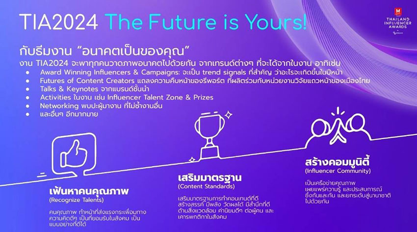 สำหรับผู้ที่สนใจร่วมงาน The Mall Lifestore Presents Thailand Influencer Awards 2024 by Tellscore เพื่อเป็นกำลังใจให้กับอินฟลูเอนเซอร์ และครีเอเตอร์ที่ชื่นชอบ สามารถสำรองที่นั่งได้ที่ zipeventapp.com เพียงกรอกโค้ด TIAGUEST24 รับส่วนลดบัตรเข้างานทันที สอบถามข้อมูลและดูรายละเอียดเพิ่มเติมได้ที่ เทลสกอร์ โทร. 095-629-8996 หรือ www.thailandinfluencerawards.com