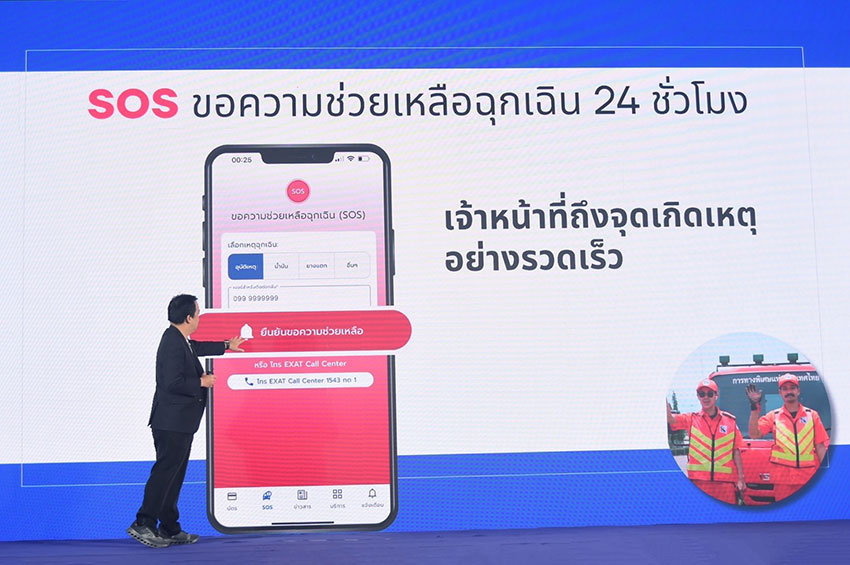 (2) เมนูขอความช่วยเหลือฉุกเฉิน SOS ปรับเปลี่ยนหน้าตา User Interface ให้ใช้ง่ายขึ้น สามารถเลือกสาเหตุฉุกเฉิน และใส่เบอร์โทรเพื่อให้เจ้าหน้าที่ติดต่อกลับ หรือกดโทร EXAT Call Center 1543 ได้ทันที