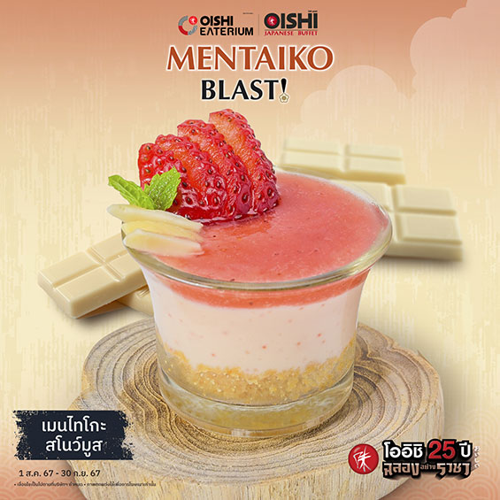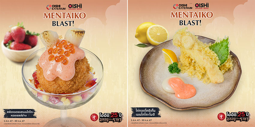 หมายเหตุ : *สำหรับเมนูพิเศษ ได้แก่ สลัดทอดซอสเมนไทโกะหอยเชลล์ย่าง และ ไก่ทอดโทริเท็นเมนไทโกะโมจิ ลูกค้า โออิชิ อีทเทอเรียม, โออิชิ บุฟเฟต์, และ โออิชิ บุฟเฟต์ สาขา เดอะมอลล์ไลฟ์สโตร์ บางกะปิ ที่ใช้บริการแพ็กเกจ DELIGHT Buffet หรือ DELIGHT Plus Buffet สามารถเลือกรับได้ 1 รายการต่อคนเท่านั้น และ **สำหรับเมนูพิเศษ (ของหวาน) เมนไทโกะสโนว์มูส ลูกค้า โออิชิ อีทเทอเรียม, โออิชิ บุฟเฟต์, และ โออิชิ บุฟเฟต์ สาขา เดอะมอลล์ไลฟ์สโตร์ บางกะปิ ทุกแพ็กเกจ HAPPY Buffet – DELIGHT Buffet – DELIGHT Plus Buffet สามารถรับประทานได้ไม่จำกัด