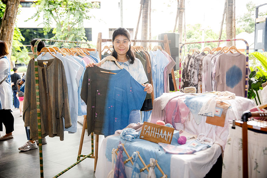 2. จังหวัดแพร่ (แดนหม้อห้อม) จัดแสดงภายใต้แนวคิด “Retreat Phrae” การนำวัตถุดิบท้องถิ่น อย่าง “ห้อม” พืชที่ให้สีน้ำเงิน และเติบโตได้ดีท่ามกลางธรรมชาติอันอุดมสมบูรณ์ของจังหวัดแพร่ นิยมนำมาย้อมผ้าสำหรับสวมใส่ ซึ่งเป็นภูมิปัญญาท้องถิ่นที่ส่งต่อกันรุ่นสู่รุ่นและสร้างอาชีพให้กับคนในชุมชนมาช้านานจากงานหัตถกรรมดั้งเดิมจึงได้รังสรรค์ขึ้นใหม่ผ่านแรงบันดาลใจจากธรรมชาติสู่การพัฒนารูปแบบสินค้าห้อมให้ทันสมัย