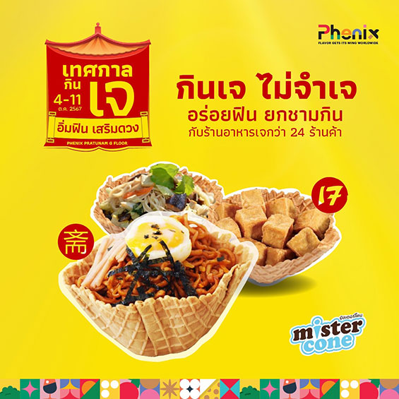 - อิ่มอร่อยไปกับเมนูอาหารเจรสเลิศในรูปแบบกินเจ ไม่จำเจ พร้อมเสิร์ฟความอร่อยฟิน กินยกชามในแบบรักษ์โลกด้วยภาชนะถ้วยวาฟเฟิลกินได้จาก Mister Cone