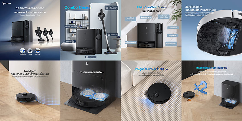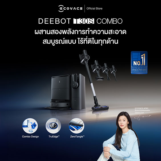 ECOVACS T30S COMBO นับเป็นการปฏิวัติวงการทำความสะอาดบ้านด้วยนวัตกรรมล้ำสมัย ผสานการทำงานของหุ่นยนต์ดูดฝุ่นและเครื่องดูดฝุ่นแบบด้ามจับเข้าด้วยกันอย่างลงตัว ด้วยเทคโนโลยี TruEdge™ หุ่นยนต์สามารถเข้าถึงทุกซอกทุกมุมของบ้านได้อย่างทั่วถึง ม็อบถูพื้นยืดหดได้อย่างอิสระ ทำให้การทำความสะอาดมีประสิทธิภาพสูงสุด ไม่ว่าจะเป็นการดูดฝุ่นหรือถูพื้น นอกจากนี้ เทคโนโลยี ZeroTangle™ ยังช่วยแก้ปัญหาเส้นผมพันแปรงที่มักพบในเครื่องดูดฝุ่นทั่วไป ด้วยระบบหวีคู่อัจฉริยะที่กวาดเส้นผมเข้าสู่ช่องดูดได้อย่างต่อเนื่อง ทำให้การบำรุงรักษาเครื่องเป็นเรื่องง่าย อีกทั้งยังมาพร้อมกับระบบกรองอากาศสี่ขั้นตอนที่ช่วยให้อากาศในบ้านสะอาดบริสุทธิ์ยิ่งขึ้น และระบบเพิ่มแรงดูดอัตโนมัติที่ปรับการทำงานให้เหมาะสมกับพื้นผิวต่างๆ ไม่ว่าจะเป็นพรมหรือพื้นแข็ง โดยยังคงรักษาระดับเสียงให้เงียบที่สุด และด้วยเซ็นเซอร์ตรวจจับรอบทิศทาง 3 มิติ หุ่นยนต์จะสามารถนำทางและหลบหลีกสิ่งกีดขวางได้อย่างแม่นยำ ทำให้การทำความสะอาดเป็นไปอย่างราบรื่นและมีประสิทธิภาพ ในส่วนของ OMNI STATION ที่มาพร้อมกับเครื่อง ไม่เพียงแต่เป็นจุดชาร์จไฟเท่านั้น แต่ยังทำหน้าที่เป็นถังเก็บฝุ่นขนาดใหญ่ ช่วยให้ผู้ใช้ไม่ต้องกังวลเรื่องการเทฝุ่นบ่อยๆ ด้วยนวัตกรรมและเทคโนโลยีที่ให้มาแบบจัดเต็ม สำหรับจุดที่หุ่นยนต์เข้าถึงยาก เครื่องดูดฝุ่นแบบด้ามจับน้ำหนักเบาที่มาพร้อมกับชุด COMBO จะเข้ามาช่วยเติมเต็มการทำความสะอาดให้สมบูรณ์แบบ ทำให้ ECOVACS T30S COMBO เป็นทางเลือกการทำความสะอาดบ้านที่ครบวงจรอย่างแท้จริง