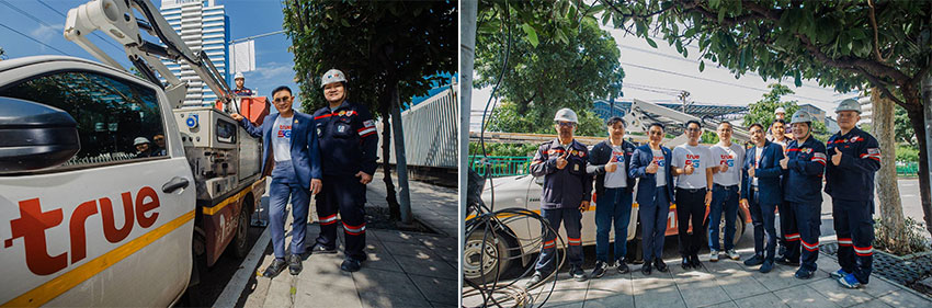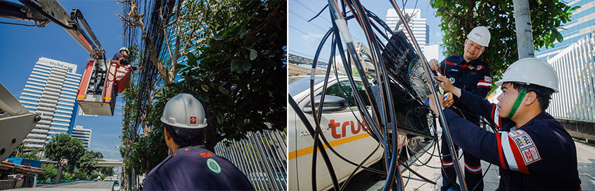 เร่งดำเนินการรื้อถอนสายสื่อสารถนนพระราม 4 ทรู คอร์ปอเรชั่น โดยนายเลิศรัตน์ รตะนานุกูล หัวหน้าสายงานรัฐกิจสัมพันธ์ นำทีมวิศวกรพื้นที่ร่วมปฏิบัติการสนับสนุน การไฟฟ้านครหลวง (MEA) โดย นายวิลาศ เฉลยสัตย์ ผู้ว่าการฯ พร้อมด้วย กรุงเทพมหานคร โดย นาย ชัชชาติ สิทธิพันธุ์ ผู้ว่าราชการฯ , กสทช. โดย ผศ.ดร. สาวัสดิ์ บุณยะเวศ ที่ปรึกษา และภาคีเครือข่ายที่เกี่ยวข้อง ร่วมดำเนินงานรื้อถอนสายสื่อสารที่ยกเลิกการใช้งานแล้วบนเสาไฟฟ้า หลังจากติดตั้งโครงข่ายเส้นใยแก้วนำแสง Fiber Optic Cable (FOC) ฝังในระดับใต้ดินเพื่อใช้ทดแทนสายสื่อสารเดิม ย่านถนนพระราม 4 ช่วงแยกคลองเตย ถึงถนนสุขุมวิท
