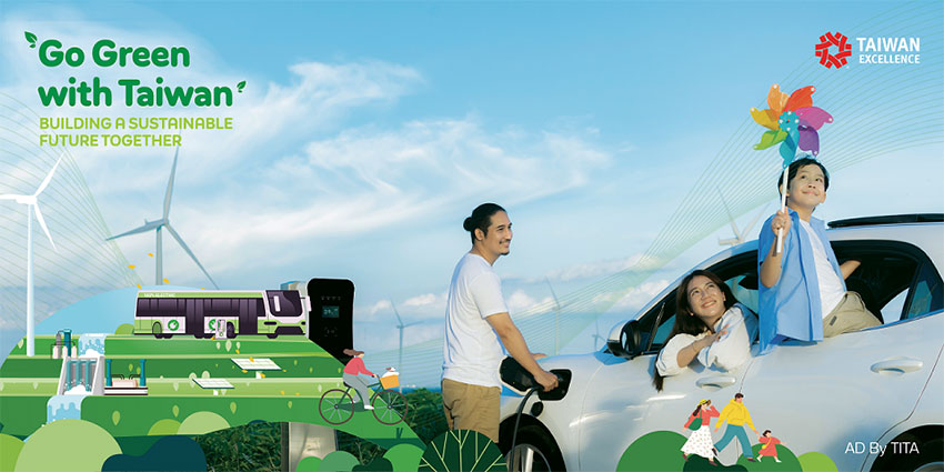 สำหรับโครงการ "Go Green with Taiwan" จัดโดยกรมการค้าระหว่างประเทศ (TITA) ภายใต้กระทรวงเศรษฐกิจ (MOEA) และดำเนินการโดยสภาส่งเสริมการค้าและการส่งออกไต้หวัน (TAITRA) มีเป้าหมายเพื่อสนับสนุนให้บุคคล สถาบันสังคม และองค์กรไม่แสวงหาผลกำไร ร่วมส่งไอเดียที่ใช้ผลิตภัณฑ์และโซลูชันสีเขียวของไต้หวันเพื่อทำให้โลกดีขึ้น สะท้อนถึงความเชี่ยวชาญด้านเทคโนโลยีสีเขียวของไต้หวัน ตลอดจนความมุ่งมั่นของไต้หวันในการพัฒนาความยั่งยืนระดับโลก