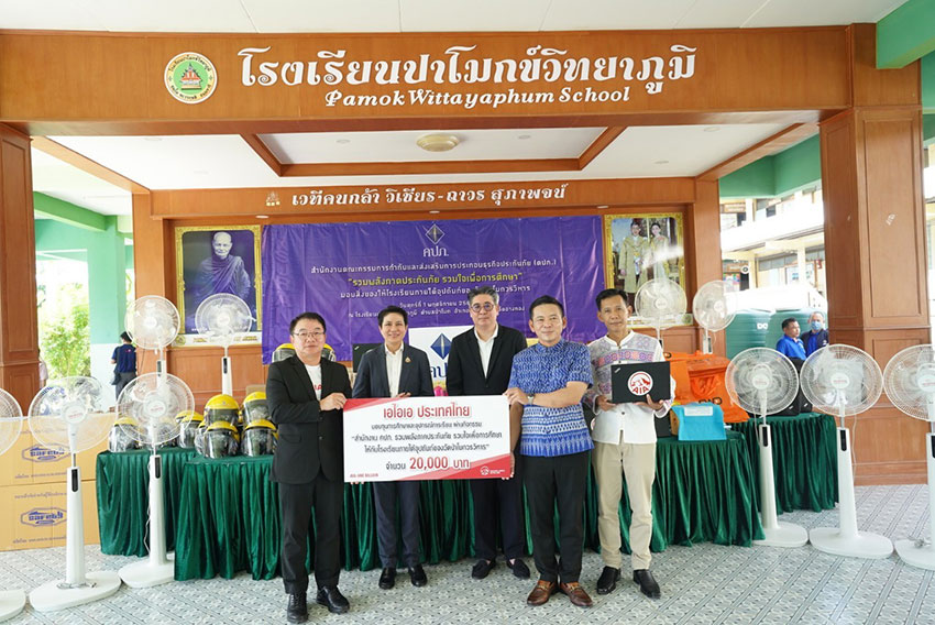 นอกจากนี้ นายสุวิรัช พงศ์เสาวภาคย์ ผู้อำนวยการฝ่ายกิจการภายนอก เป็นผู้แทนเอไอเอ ประเทศไทย ร่วมกับ นางสาววสุมดี วสีนนท์ รองเลขาธิการ ด้านกำกับคนกลางและประกันภัยภูมิภาค และนายสุรินทร์ ตนะศุภผล ผู้ช่วยเลขาธิการ สายกลยุทธ์องค์กร สำนักงาน คปภ. มอบทุนการศึกษาจำนวน 20,000 บาท และแล็ปท็อป 10 เครื่อง โดยมี นายชัยวัฒน์ มั่นอก ผู้อำนวยการโรงเรียนปาโมกข์วิทยาภูมิ และนายอิทธิพล ศรีชัย รักษาการผู้อำนวยการโรงเรียนชุมชนเทศบาลวัดปาโมกข์ (นรสีห์วิทยาคาร) เป็นผู้รับมอบ ผ่านกิจกรรม “สำนักงาน คปภ. รวมพลังภาคประกันภัย รวมใจเพื่อการศึกษาให้กับโรงเรียนภายใต้อุปถัมภ์ของวัดป่าโมกวรวิหาร” เพื่อส่งเสริมด้านการศึกษาแก่เด็กนักเรียนของโรงเรียนในพระอุปถัมภ์ของวัดป่าโมกวรวิหารทั้ง 2 โรงเรียน ซึ่งถือเป็นการตอกย้ำพันธกิจที่เอไอเอมุ่งมั่นอย่างยิ่งในการสนับสนุนให้คนไทยและเยาวชนมีสุขภาพและชีวิตที่ดีขึ้น ตามคำมั่นสัญญา ‘Healthier, Longer, Better Lives’