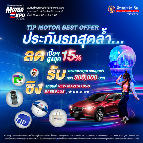“TIP MOTOR BEST OFFER ประกันรถสุดล้ำ” มอบสิทธิประโยชน์สุดพิเศษที่เหนือกว่าใคร อาทิ