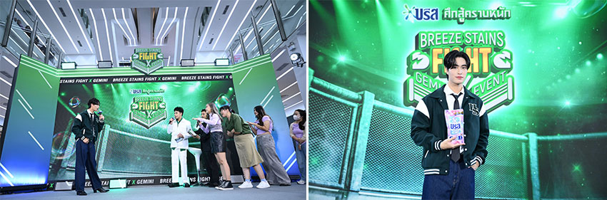 เริ่มต้นยกแรกบนสังเวียนด้วยเกมใบ้คำตรงใจบรีส ที่หนุ่มเจมีไนน์ ต้องเลือกสุ่มแฟนคลับผู้โชคดีขึ้นมาร่วมเป็นนักสู้ประลองความรู้ใจอย่างใกล้ชิด ทำเอาแฟน ๆ ฟินจนทำตัวไม่ถูก สานต่อความฟินในยกที่สองด้วยเกมเรียงเต๋าบรีส ที่แฟนคลับผู้โชคดีต้องร่วมกันเรียงภาพ ซึ่งเกมนี้ต้องอาศัยความเร็วเพื่อชิงกันตอบคำถามจากภาพ ใครทำคะแนนได้มากกว่าจะเป็นผู้ชนะรับของรางวัลกลับบ้าน งานนี้ทำเอาสังเวียนเกือบลุกเป็นไฟ เพราะเหล่าแฟนคลับสู้กันแบบไม่มีใครยอมใคร และทำให้ศึกสู้คราบหนัก Breeze Stains Fight x Gemini ในครั้งนี้ ทีมบรีสเป็นฝ่ายเอาชนะคราบหนักไปได้ และก่อนปิดสังเวียนเจมีไนน์ ได้จัดเตรียมโชว์สุดพิเศษ ที่ขนเพลงฮิตติดชาร์ต มาร่วมสร้างโมเม้นต์สุดฟินให้กับแฟน ๆ ได้ยิ้มจนแก้มปริไปตาม ๆ กัน จนถึงช่วงเวลาสำคัญที่เหล่าแฟนคลับรอคอย กับกิจกรรม Lucky Fan Photo ที่แฟนคลับผู้โชคดี จะได้ร่วมถ่ายรูปกับ เจมีไนน์ ทั้งแบบตัวต่อตัว และแบบกลุ่ม ก่อนที่จะเดินทางมาถึงช่วงสุดท้ายของงาน เจมีไนน์ ได้กล่าวขอบคุณแฟนคลับที่คอย ให้กำลังใจเสมอมา เรียกได้ว่าเป็นกิจกรรม ที่เต็มอิ่มครบรสแห่งความสุขอย่างแท้จริงเลยทีเดียว