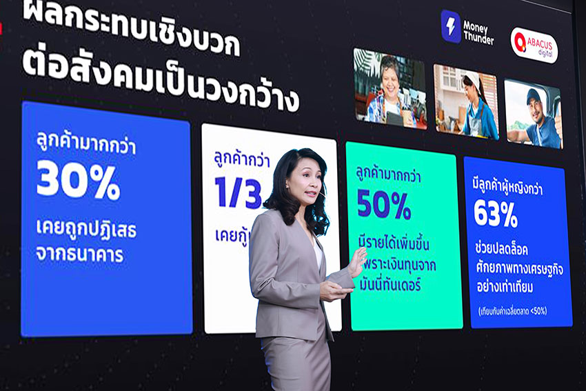 อบาคัส ดิจิทัล (ABACUS digital) ชูเทคโนโลยี AI แก้ปัญหาหนี้ไทยอย่างยั่งยืน พร้อมสร้างโอกาสที่เท่าเทียมแก่คนไทยทุกกลุ่มเข้าถึงแหล่งเงินทุนผ่านสินเชื่อออนไลน์ “มันนี่ทันเดอร์ (MoneyThunder)” ที่ตอบโจทย์ด้วยการพัฒนา AI ด้วยฝีมือคนไทย โดดเด่นจนก้าวขึ้นเป็นผู้นำในตลาดสินเชื่อออนไลน์ด้วยการปล่อยสินเชื่อแล้วกว่า 2.4 หมื่นล้านบาท ช่วยปลดล็อกให้กับคนไทยทุกกลุ่มให้สามารถเข้าถึงสินเชื่อในระบบ และพัฒนานวัตกรรมทางการเงินเพื่อยกระดับคุณภาพชีวิตของคนไทยอย่างยั่งยืน เพื่อสร้างผลกระทบเชิงบวกในระยะยาวให้กับสังคมไทยอย่างแท้จริง พร้อมทั้งมุ่งมั่นขยายฐานธุรกิจด้วยการนำเทคโนโลยี AI ที่พัฒนาด้วยฝีมือคนไทยสู่ระดับภูมิภาค