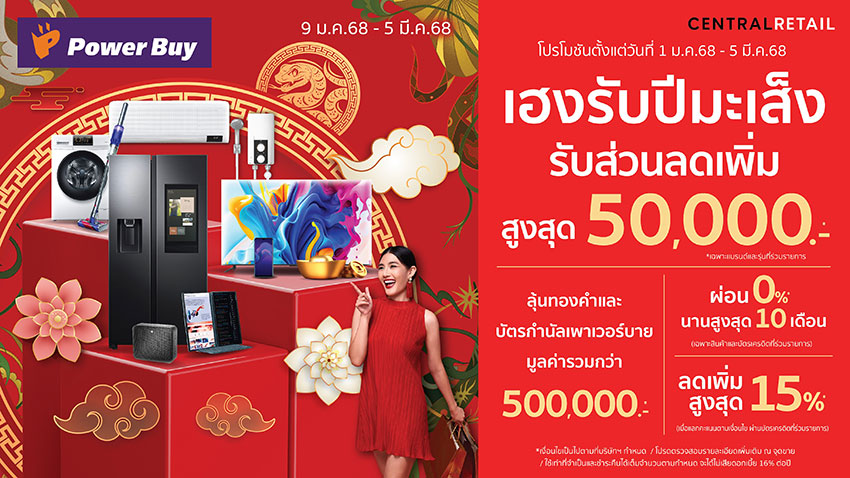 ไม่เพียงเท่านี้ เพาเวอร์บาย ยังคงเดินหน้าดันยอดขายอย่างต่อเนื่อง จัดแคมเปญ “เฮงรับปีมะเส็ง” ตั้งแต่วันนี้ – 5 มีนาคม 2568 พบโปรโมชั่นสุดเฮง ได้แก่