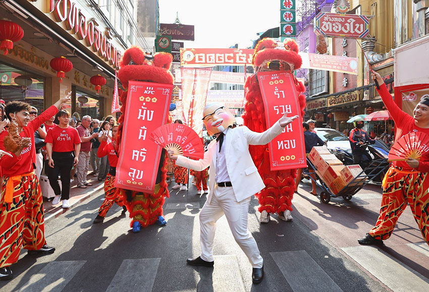 ตรุษจีนปี 2568 นี้ KFC ประเทศไทย จัดเซอร์ไพรส์ครั้งใหญ่ นำผู้พันแซนเดอร์สมาแปลงโฉมเป็น “แป๊ะยิ้ม” สุดน่ารักพัดโชคดีมาให้ลูกหลาน พร้อมนำทีมคณะเชิดสิงโตแบบใหม่ทำถึง ซึ่งเป็นครั้งแรกของ KFC ประเทศไทย ที่มีการจัดขบวนแห่ตรุษจีนเช่นนี้! ก่อนพาแป๊ะแซนเดอร์สลงพื้นที่พบปะผู้คนที่ออกมาจับจ่ายในวันที่ 27 มกราคม 2568 (วันจ่าย) ที่ผ่านมาอย่างใกล้ชิด ตามย่านฮอตฮิตในวันตรุษจีน เพื่อสร้างสีสัน มอบคำอวยพร ให้ทุกคนเฮงๆ ปังๆ ต้อนรับปีใหม่จีน เรียกรอยยิ้มและความสนใจจากผู้คนที่ผ่านไปมาอย่างล้นหลาม