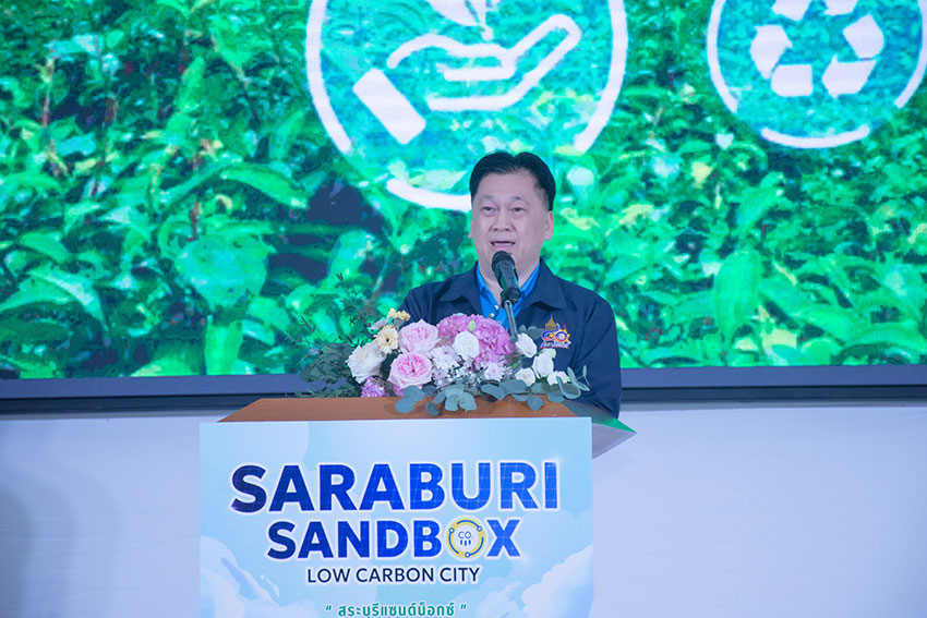 “สระบุรีแซนด์บ็อกซ์” การทำงานเชิงพื้นที่ โดยความร่วมมือระหว่างภาครัฐ ภาคเอกชน และภาคประชาสังคม (Public-Private-People Partnership: PPP) นำโดยผู้ว่าราชการจังหวัดสระบุรี มี 3 ภาคีหลัก-จังหวัดสระบุรี สมาคมอุตสาหกรรมปูนซีเมนต์ไทย (TCMA) และสภาอุตสาหกรรมจังหวัดสระบุรี ร่วมกันขับเคลื่อนพัฒนาจังหวัดสระบุรีสู่เมืองคาร์บอนตํ่า “SARABURI SANDBOX LOW CARBON CITY” เชื่อมโยงความร่วมมือองค์กรหลายภาคส่วน ทั้งในประเทศและต่างประเทศ กว่าหนึ่งปีของการขับเคลื่อนนับจากการประกาศเจตนารมณ์ร่วมกันเมื่อวันที่ 15 สิงหาคม พ.ศ. 2566 นำมาซึ่งความก้าวหน้าตามลำดับ และยังคงมีเป้าหมายที่ต้องเดินหน้ากันต่อใน 5 ด้านหลัก ได้แก่ 1. การเปลี่ยนผ่านสู่พลังงานสะอาด 2. การผลักดันอุตสาหกรรมสีเขียว 3. การสร้างมูลค่าให้วัสดุเหลือใช้ 4. การส่งเสริมด้านเกษตรกรรมคาร์บอนต่ำ และ 5. การเพิ่มพื้นที่สีเขียว ด้วยความร่วมมือสนับสนุนจากภาครัฐ ภาคเอกชนภาคประชาสังคม และแสวงหาแหล่งทุนสีเขียว เพื่อจะลดการปล่อยก๊าซเรือนกระจกให้ได้ 5 ล้านตันคาร์บอนไดออกไซด์เทียบเท่าภายในปี พ.ศ. 2570