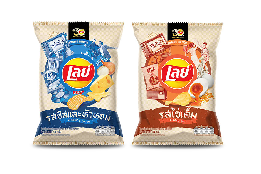 เพื่อฉลองครบรอบ 30 ปีอย่างเป็นทางการ เลย์ได้นำ 2 รสชาติแสนคิดถึงในตำนานที่แฟน ๆ โหวตเรียกร้องให้นำกลับมาทำมากที่สุด อย่าง “รสไข่เค็ม” ที่หอมนัวด้วยกลิ่นไข่เค็มแท้ ๆ และรสชาติอร่อย กลมกล่อมลงตัว และ “รสชีสและหัวหอม” กับการจับคู่กันของ 2 รสชาติโดนใจที่ใครได้ชิมก็บอกว่าแซ่บ กลับมาเสิร์ฟให้แฟน ๆ หายคิดถึงกันอีกครั้ง ซึ่งการันตีได้ว่าเลย์เป็นตัวจริงเรื่องการสร้างสรรค์รสชาติที่ถูกปากผู้บริโภค และเป็นรสชาติในความทรงจำแม้ว่าจะผ่านมานานหลายปีแล้วก็ตาม โดยทั้ง 2 รสชาติได้รับการต้อนรับที่ดีจากผู้บริโภคสมการรอคอยในทุกช่องทาง ตั้งแต่เริ่มวางจำหน่ายในเดือนมกราคม 2568 ที่ผ่านมา และสามารถหาซื้อได้แล้ววันนี้ที่ร้านสะดวกซื้อ ห้างสรรพสินค้า ซูเปอร์มาร์เก็ต ไฮเปอร์มาร์เก็ต ร้านค้าชั้นนำทั่วประเทศ และช่องทางออนไลน์