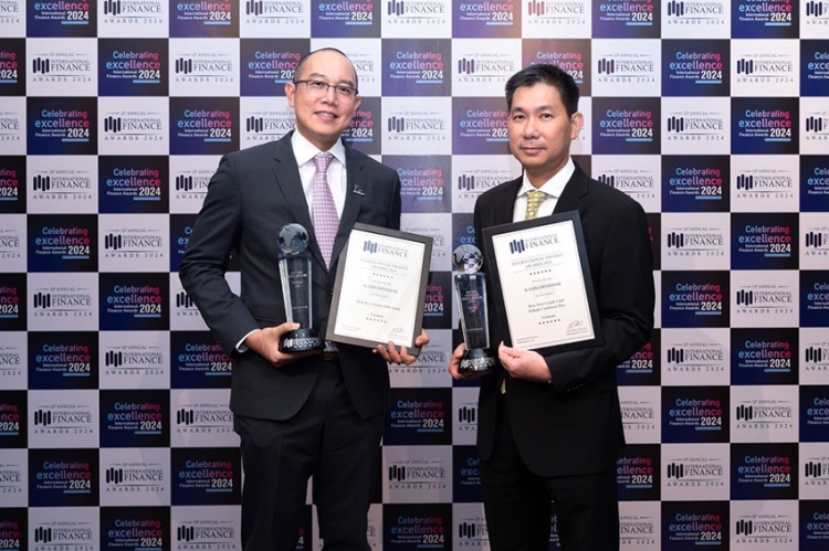 นายรุ่งเรือง สุขเกิดกิจพิบูลย์ (ขวา) ผู้จัดการใหญ่ พร้อมด้วยนายชัช เหลืองอาภา (ซ้าย) รองผู้จัดการใหญ่ ธนาคารกสิกรไทย เป็นผู้แทนธนาคาร รับ 2 รางวัลใหญ่ ได้แก่ รางวัลสุดยอดบัตรเครดิตใหม่ ประเทศเวียดนาม (Best New Credit Card) และรางวัลสุดยอดธนาคารแห่งใหม่เพื่อธุรกิจเอสเอ็มอีออนไลน์ ประเทศเวียดนาม (Best New Online SME Bank) จากงาน International Finance Awards 2024 สะท้อนความเป็นธนาคารที่พร้อมสนับสนุนและส่งเสริมศักยภาพธุรกิจเอสเอ็มอีให้เติบโตได้อย่างยั่งยืนที่ประเทศเวียดนาม และถือเป็นอีกก้าวสำคัญที่ตอกย้ำความเป็นผู้นำของธนาคารกสิกรไทยในระดับภูมิภาคที่มุ่งมั่นส่งมอบบริการทางการเงินที่มั่นคงปลอดภัย ใช้ง่ายสบายใจ และครอบคลุมทั้งกลุ่มลูกค้ารายย่อย ธุรกิจเอสเอ็มอี และองค์กรขนาดใหญ่ จัดโดย International Finance นิตยสารด้านธุรกิจและการเงินชั้นนำระดับโลกจากประเทศอังกฤษ ณ โรงแรมวอลดอร์ฟ แอสโทเรีย กรุงเทพฯ เมื่อเร็ว ๆ นี้
